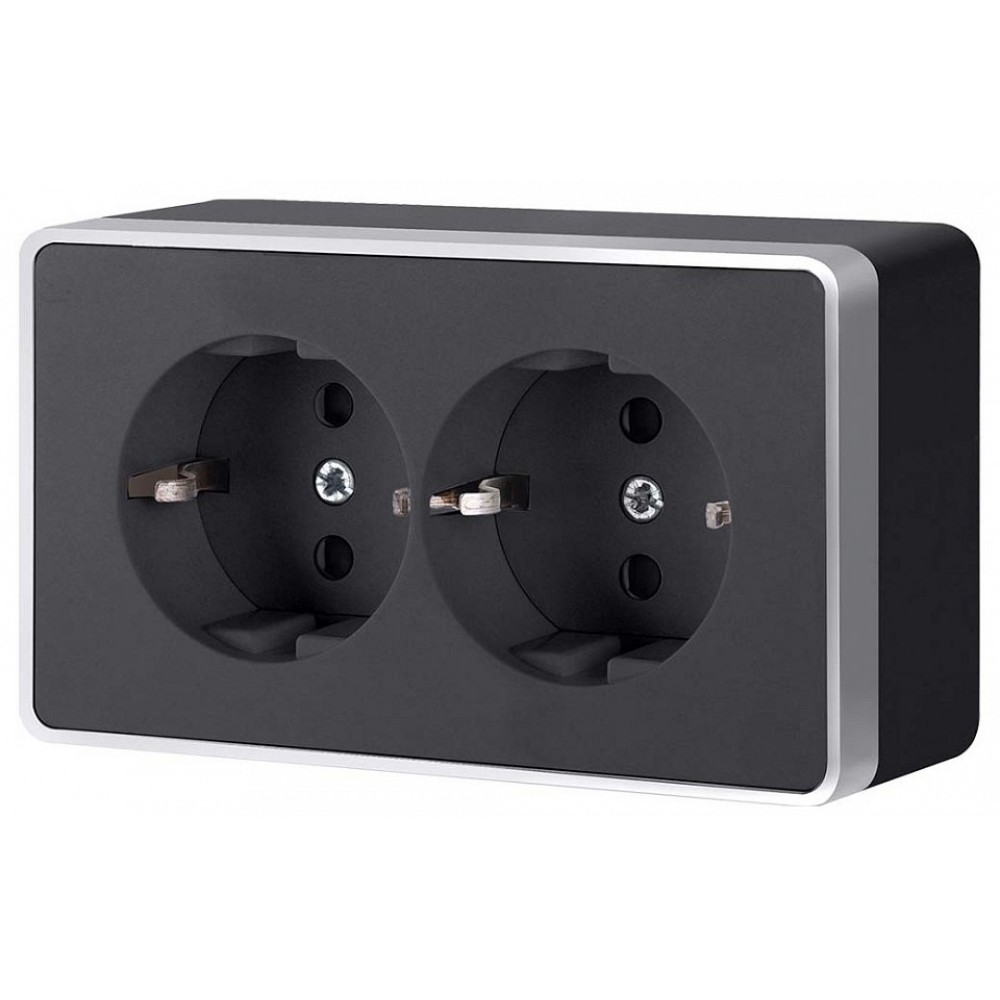 Технические характеристики Розетка двойная с заземлением Werkel Gallant (черный с серебром) W5072134