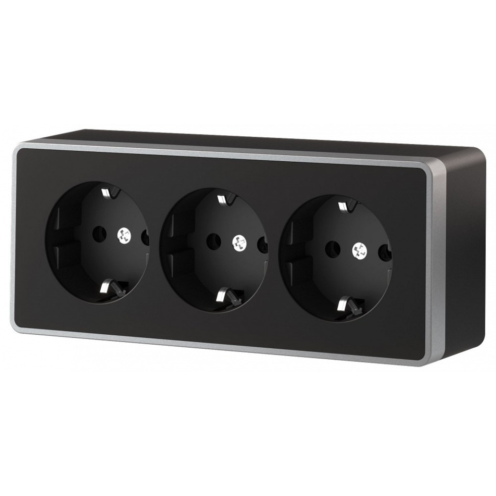 Розетка тройная с заземлением и со шторками Werkel Gallant (черный с серебром) W5073134